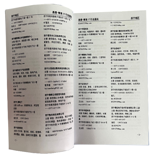 《青海IT行业通讯》收集整理了青海地区:西宁市、海东市、海北市、黄南市、海南市、果洛市、玉树市、海西州共8个市的IT数据,商家数据大约10000条左右,信息包括各市及周边县的数码城、大厦及小区路边的IT行业厂家商家的固话、手机、地址、主营、网址等。易搜-中国IT全面推出全国各地的IT行业通讯录工具书,此书分为全国各地31个省(每省1本)的IT商家和IT企业信息汇编而成!