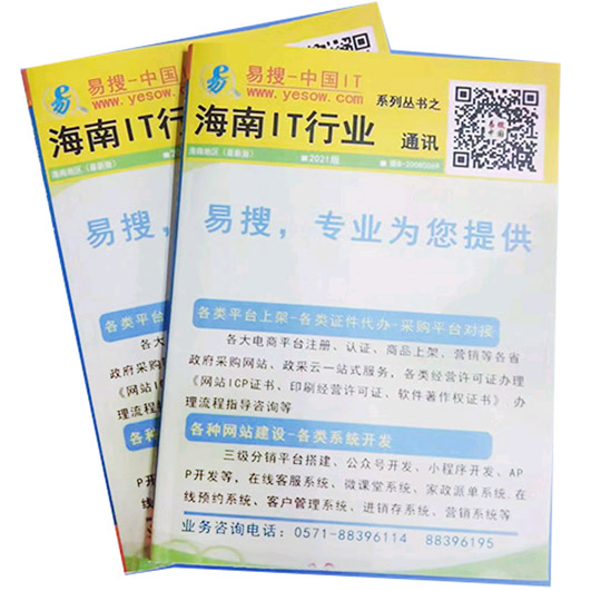 易搜自从发展全国以来,一直致力于打造全国IT商家朋友们心中最方便完善的IT信息服务!!通过市场调查,我们发现海南地区目前还没有一本完善、方便于查找IT商家信息的渠道手册。应全国朋友们的强烈要求,我中心决定再大力投入打造一期易搜2021年《海南IT行业通讯录》!!